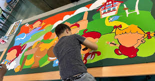 Projet réalisé sous le préau de l'école, avec la participations des enfants - 2023 / 2024