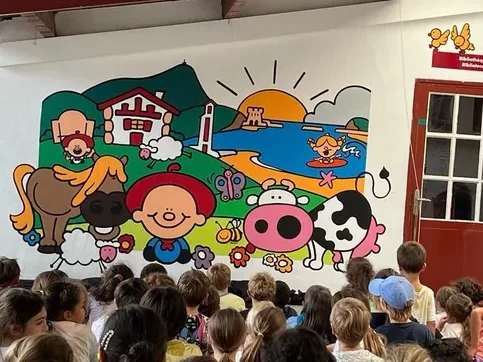 Fresque réalisée par Enaut, Ilan, Titouan et Zumai à l’Espace Jeunes d'Urrugne lors des vacances de printemps 2025.